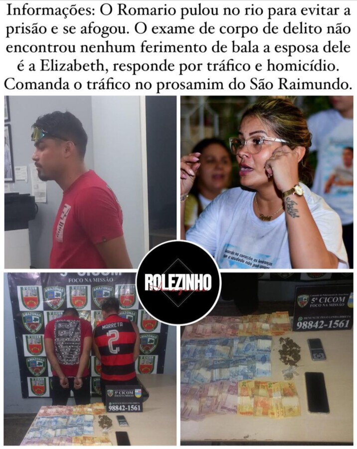 A esposa dele, identificada como Elizabeth, diz que o rapaz foi morto injustamente pelos policiais. No entanto, Romário já respondia por outros crimes na Justiça, como tráfico de drogas. Elizabeth também tem a ficha suja e responde por tráfico de drogas e homicídio, além de ser apontada como a comandante do tráfico de entorpecentes do Prosamim do bairro São Raimundo.
