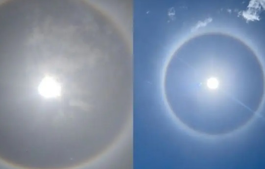 Em vídeos registrados por moradores espantados com o fenômeno, é possível ver a luz de forma muito nítida, fazendo um círculo perfeito ao redor do sol. Com a repercussão nas redes socias, a população apelidou o evento de “bola de luz”.
