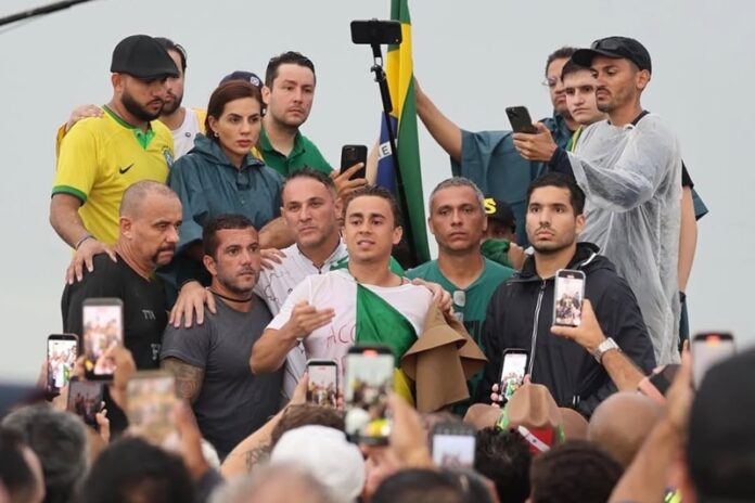 Em janeiro, Débora também acompanhou Nikolas em uma caminhada de Paracatu (MG) até Brasília, em defesa do ex-presidente Jair Bolsonaro, publicando registros ao lado do deputado nas redes sociais.