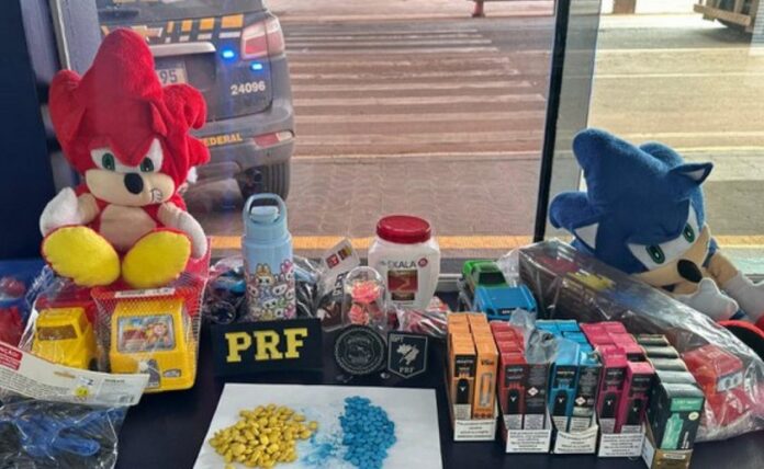 Na bagagem de mão, os policiais encontraram 37 cigarros eletrônicos. Já no compartimento inferior do veículo, foram localizadas caixas com brinquedos e uma mala com roupas. Ao vistoriar os objetos, os agentes identificaram que a droga estava escondida dentro de dois ursinhos de pelúcia e em um pote de condicionador.