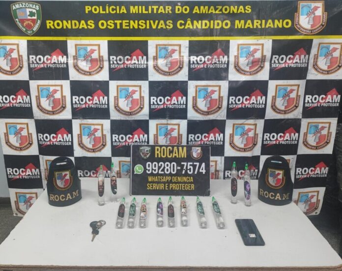 Na madrugada desta sexta-feira (6), dois homens, de 18 e 22 anos, foram presos pela Polícia Militar do Amazonas suspeitos de transportar frascos de lança-perfume no bairro Cidade de Deus, zona norte de Manaus.