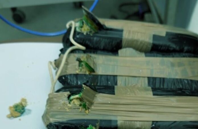 Com auxílio da cadela policial Ágatha, os agentes localizaram inicialmente 2,5 quilos de pasta base de cocaína dentro de uma mochila. Em seguida, mais 6,5 quilos foram encontrados escondidos em uma lixeira da embarcação.
