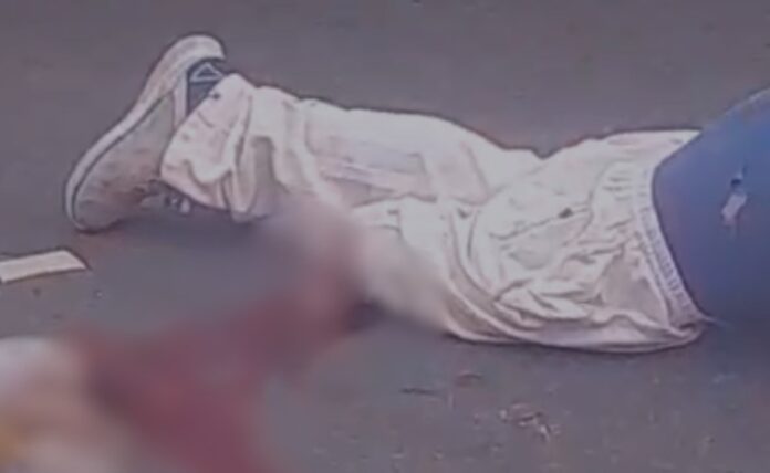 Quem passava pelo local se deparou com uma cena de grande gravidade. O homem vestia uniforme de trabalho, o que indica que possivelmente seguia para o serviço ou retornava para casa no momento do ocorrido.