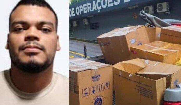 Segundo a polícia, parte da droga — cerca de 100 quilos — estava no veículo do investigado, enquanto o restante, 238 quilos, foi encontrado dentro da casa, embalado em caixas e preparado para distribuição.
