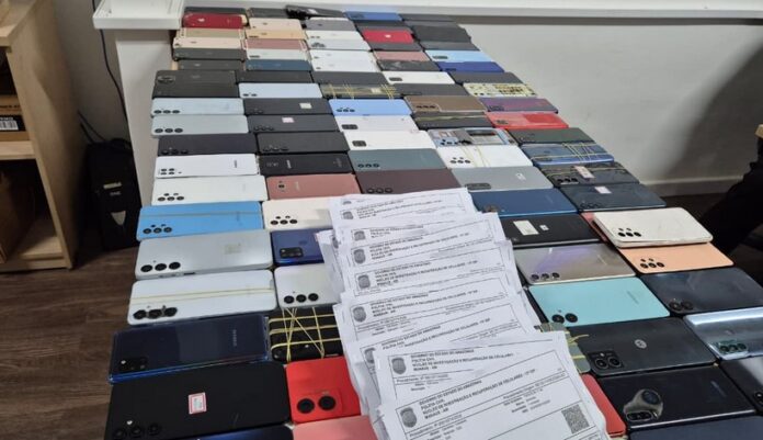 Na loja do suspeito, a polícia apreendeu mais de 180 celulares, sendo ao menos 18 com registro de roubo ou furto. A investigação apontou que o estabelecimento, localizado no Centro da capital, integrava um esquema de compra, desbloqueio, desmanche e revenda de aparelhos roubados.