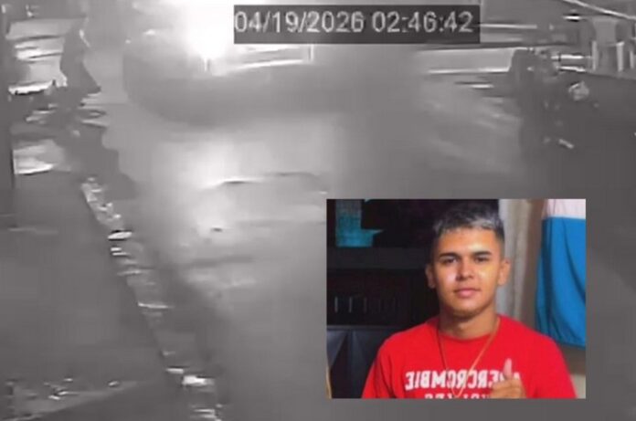 Imagens de câmeras de segurança registraram a abordagem. No vídeo, o jovem aparece empurrando a motocicleta antes de ser cercado pelos policiais.