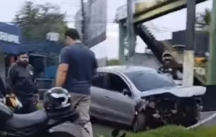 No local, é possível ver pessoas reunidas próximas ao carro após o impacto. Até o momento, não há informações confirmadas sobre o estado de saúde do motorista, nem detalhes oficiais sobre as circunstâncias do acidente.