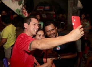 O candidato a prefeito de Manaus, Marcelo Ramos (PT), reuniu uma multidão de apoiadores na comunidade Nova Floresta, no bairro Tancredo Neves, na zona...