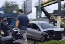 Colisão contra viaduto deixa trânsito comprometido na Avenida Torquato Tapajós