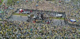 Nikolas Ferreira encerra ato em Brasília de joelhos, em oração pela nação